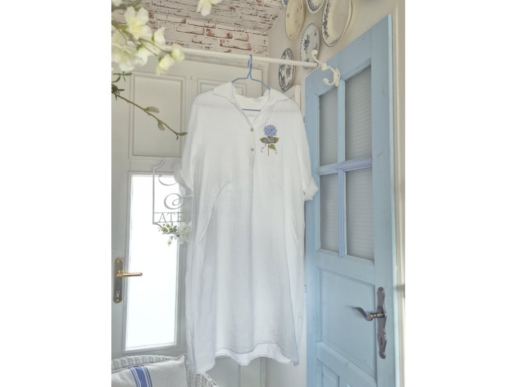 Délka cca 106cm, délka rukávu od krku cca 55cm, šířka šatů ve spodní části cca 69 cm, přes prsa cca 55 cm, šíře rukávu je cca 21cm.