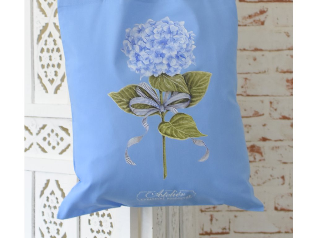 Domů / Móda a doplňky / Plátěná modrá taška - Hortenzie