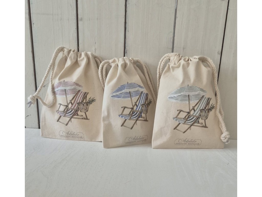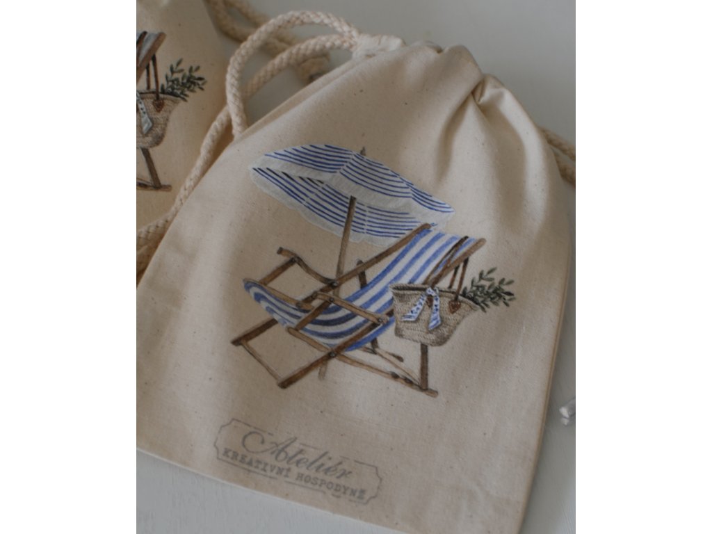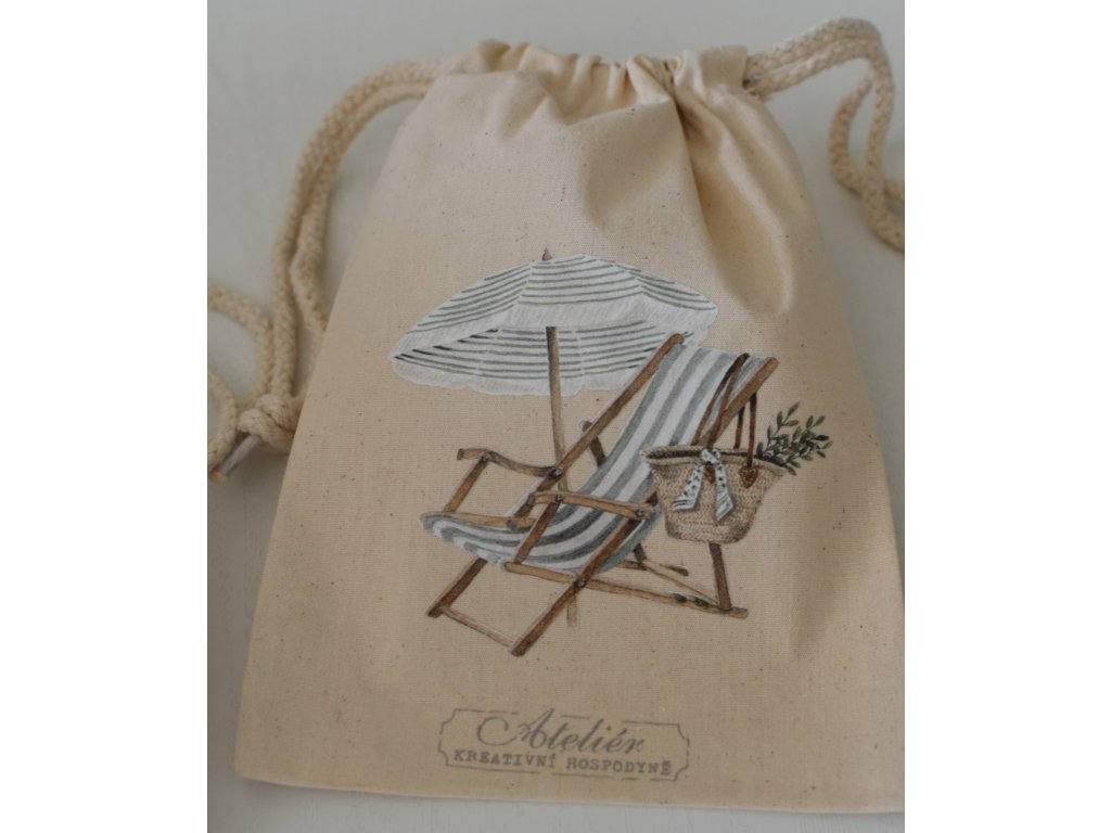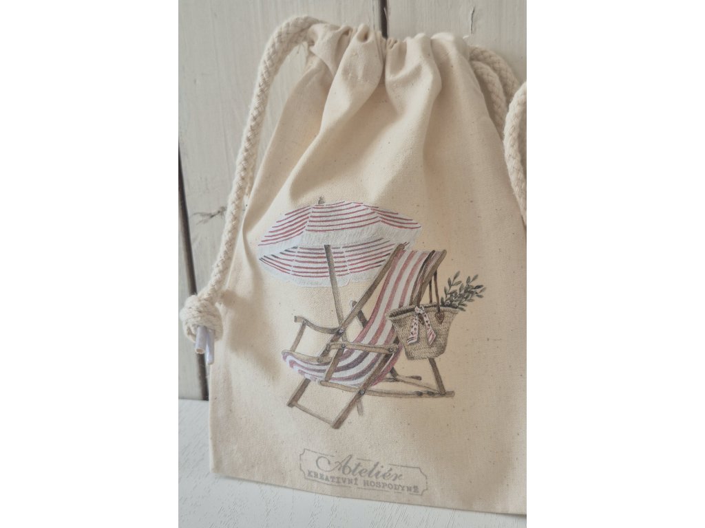 Plátěný sáček - motiv Lehátko se slunečníkem