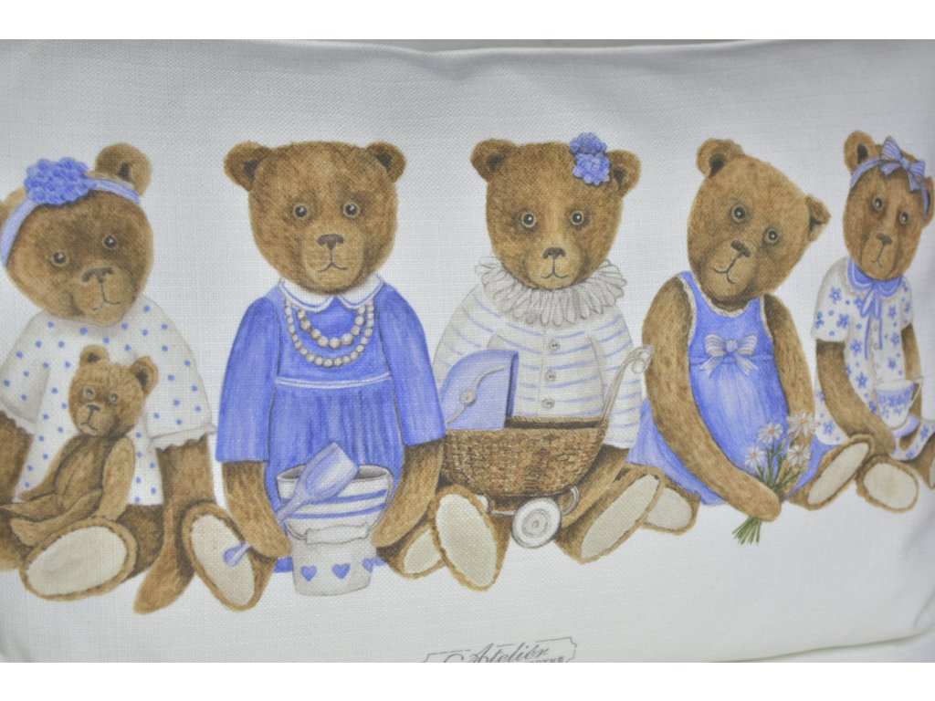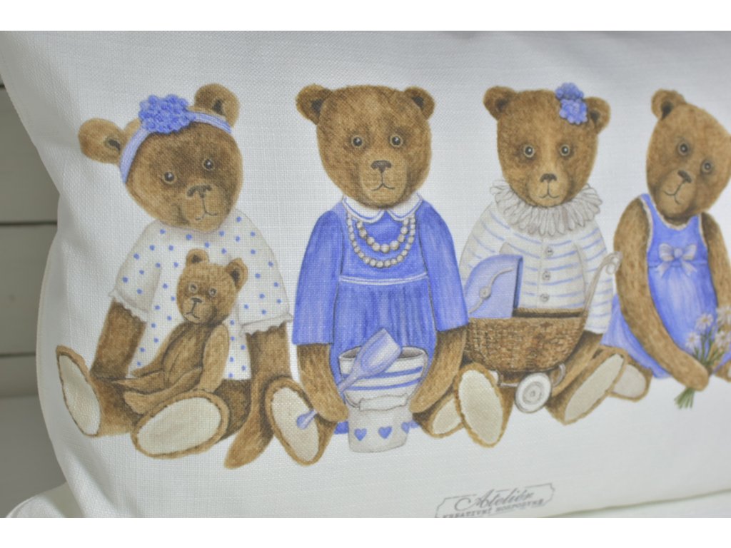 Povlak na polštář (světlý, strukt.) 60x40cm "Medvědí holky - modré"