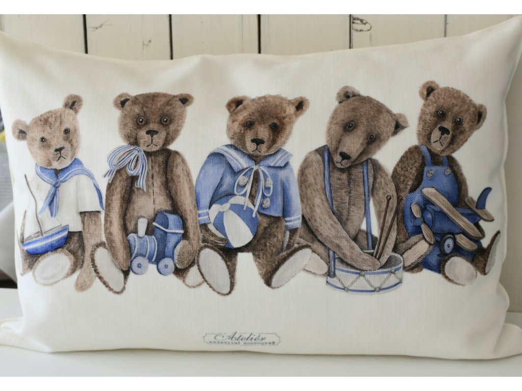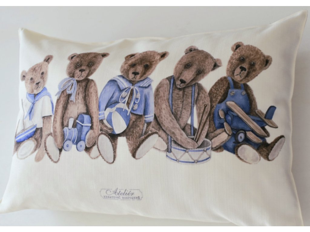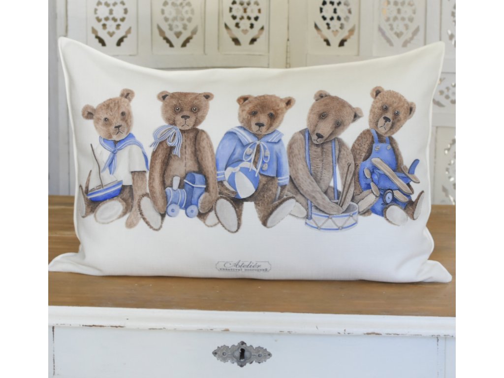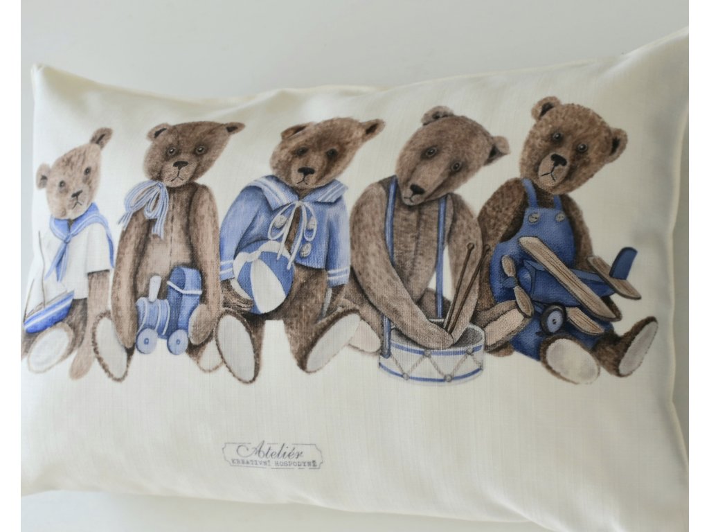 Domů / Polštáře a textil / Povlak na polštář (světlý, strukt.) 60x40cm "Medvědí kluci" bručouni