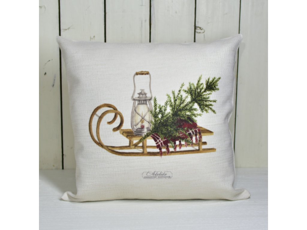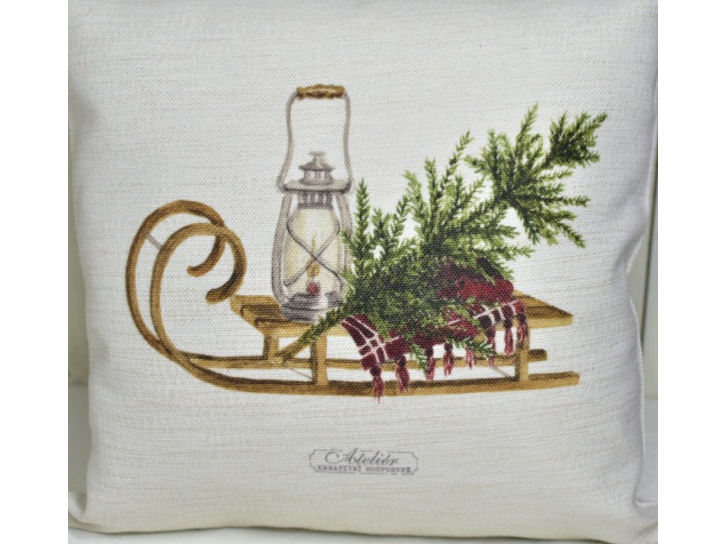Domů / Sezona - zima a Vánoce / Povlak na polštář 40x40 cm "Sáňky"