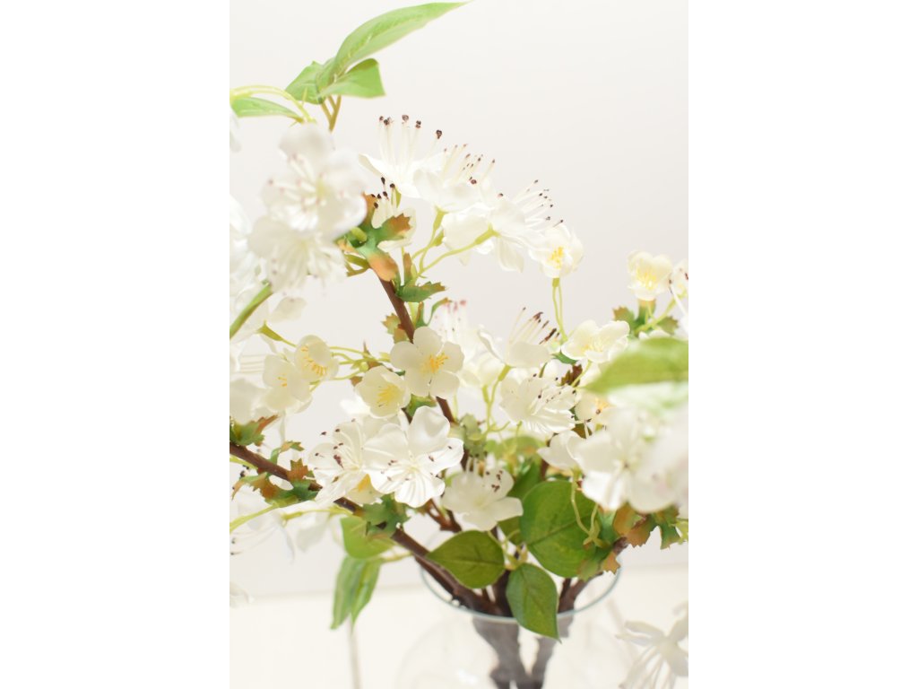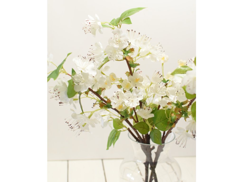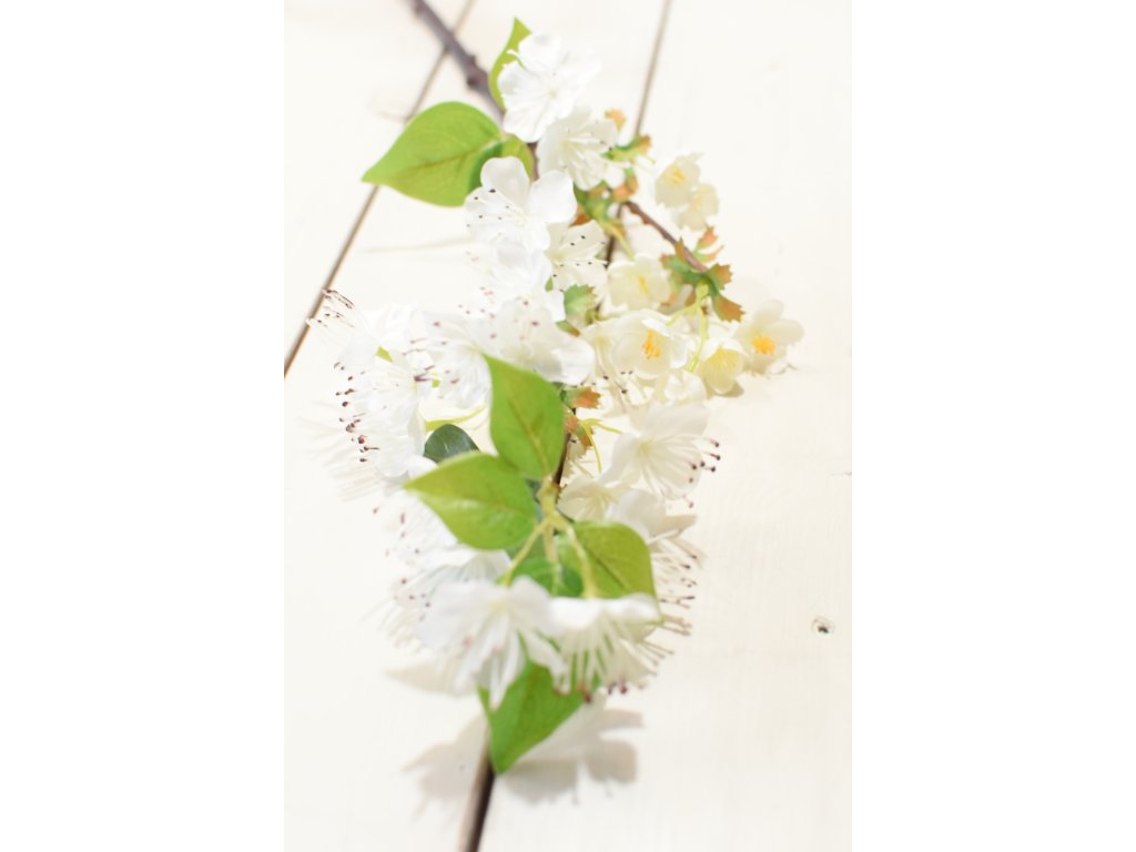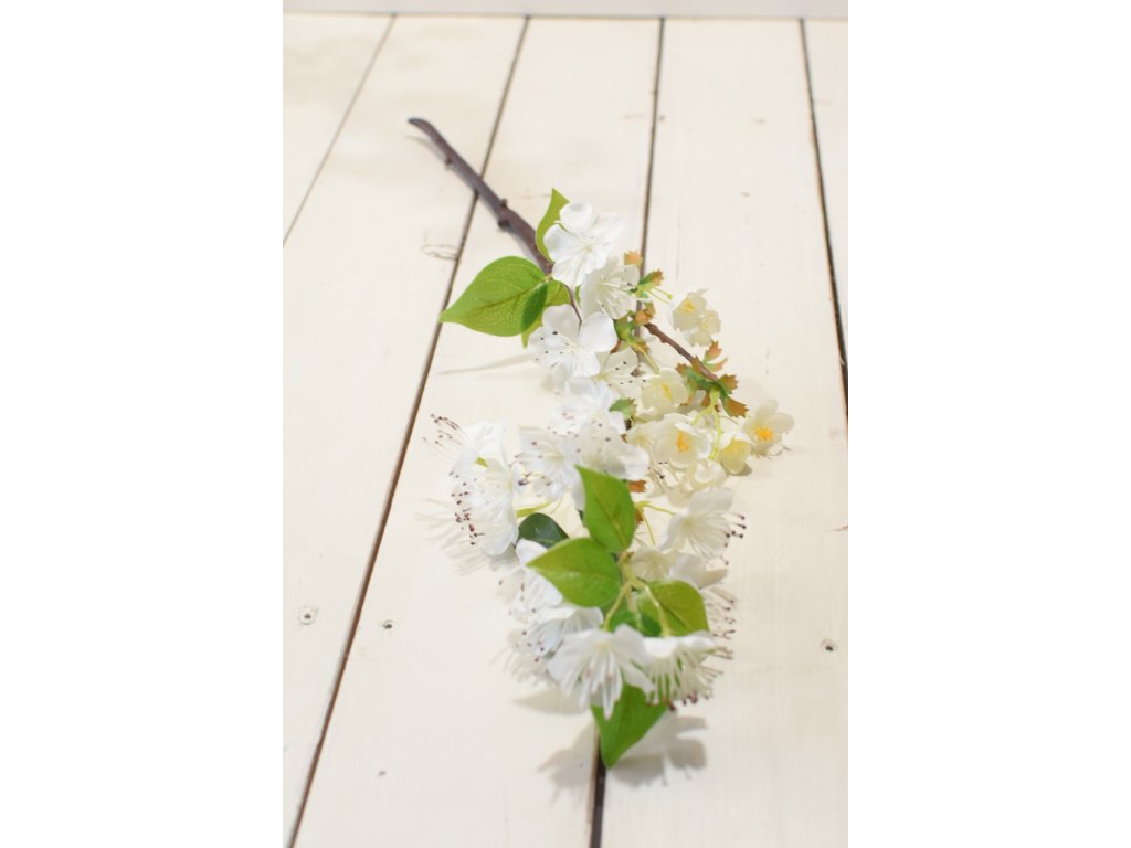 Větvička s bílými látkovými květy, které mají výrazné pestíky. Velmi hezky a věrně propracovaná.