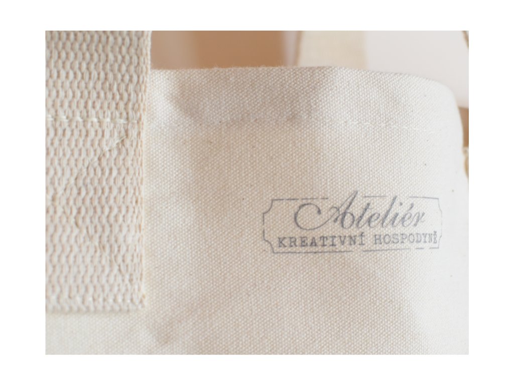 Velká, pevná plátěná taška s autorským obrázkem a značkou ateliéru. Materiál: 100% bavlna (340g/m²), rozměry: šířka 43cm, výška 35cm, hloubka 13,5cm, popruh je široký 5cm a dostatečně dlouhý na nošení přes rameno. Délka rukojeti 83cm.